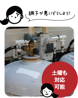プロパンガスの設置・配達・点検のほか、修理なども承ります。平日は難しいというお客様も、土曜